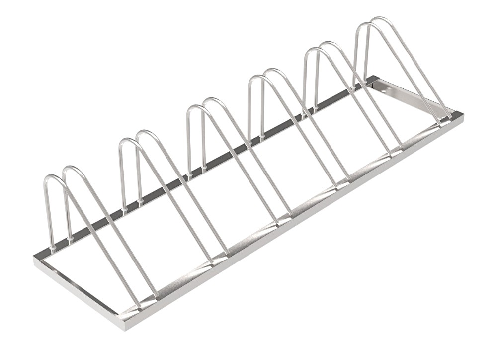 Fabricado con varillas macizas de acero galvanizado de primera calidad, este soporte para bicicletas de suelo ofrece una excelente resistencia frente a la corrosión, la humedad, el desgaste y las condiciones climáticas adversas. Su acabado galvanizado en caliente garantiza una larga vida útil y un mantenimiento mínimo, incluso en instalaciones de uso intensivo.