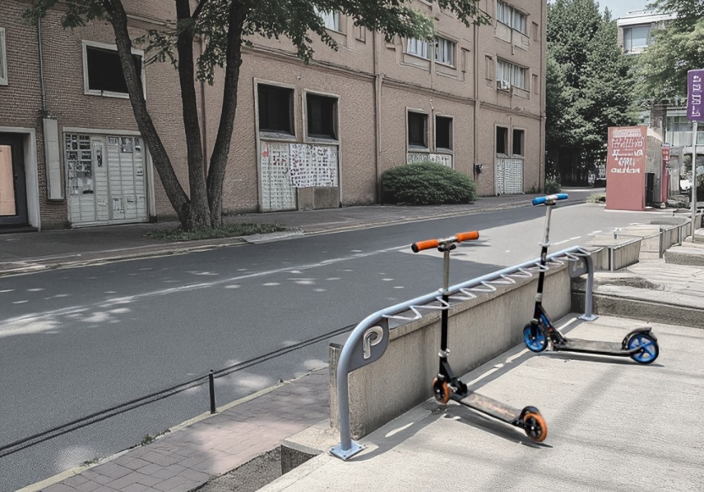 El aparcapatinetes de acero galvanizado DUMUAP-04 es una solución eficaz para promover la movilidad sostenible, mejorar la organización del entorno y ofrecer un estacionamiento cómodo y seguro en cualquier espacio exterior.