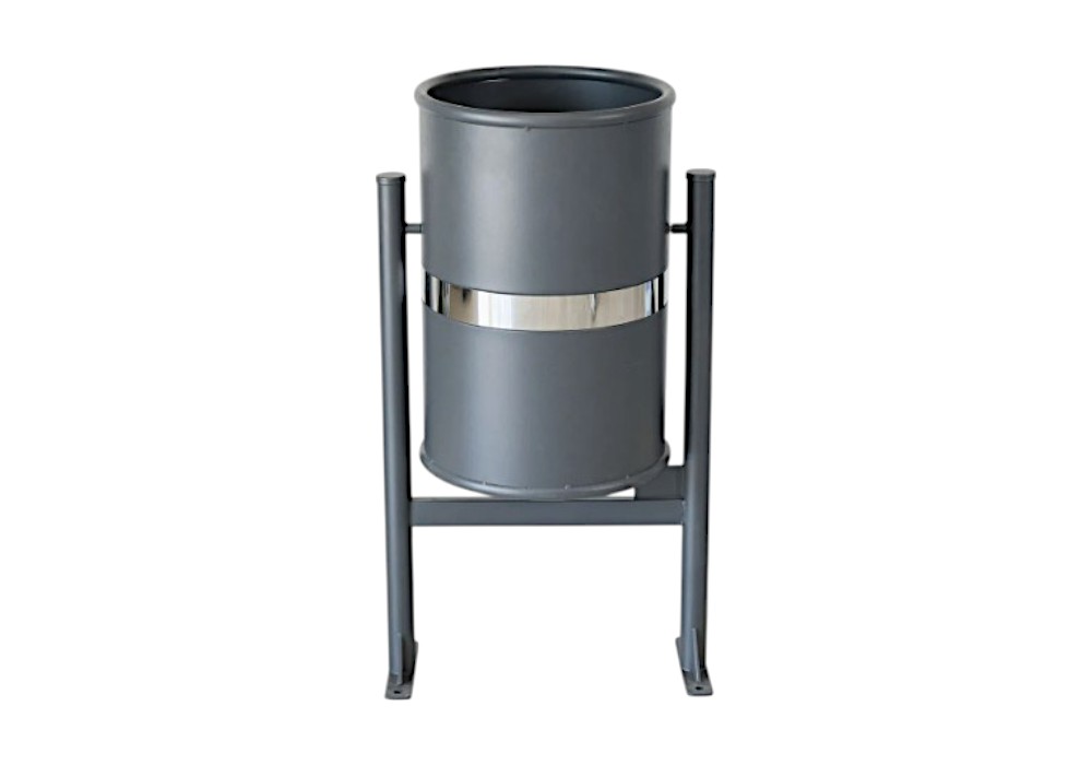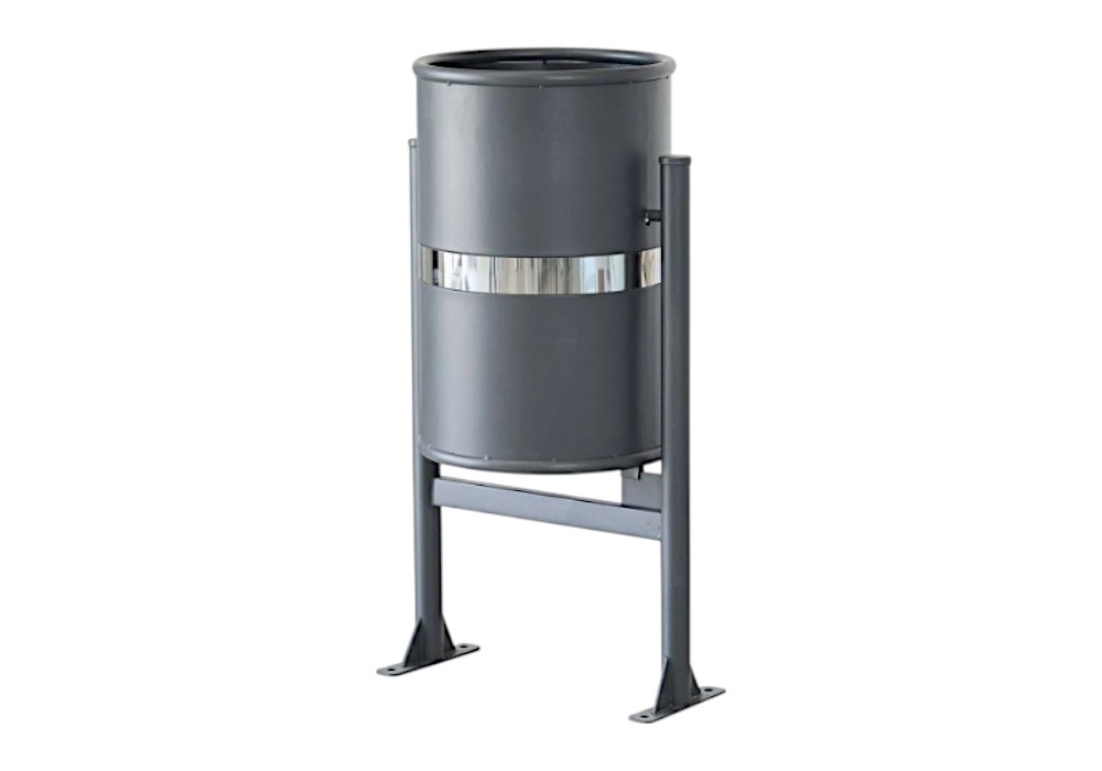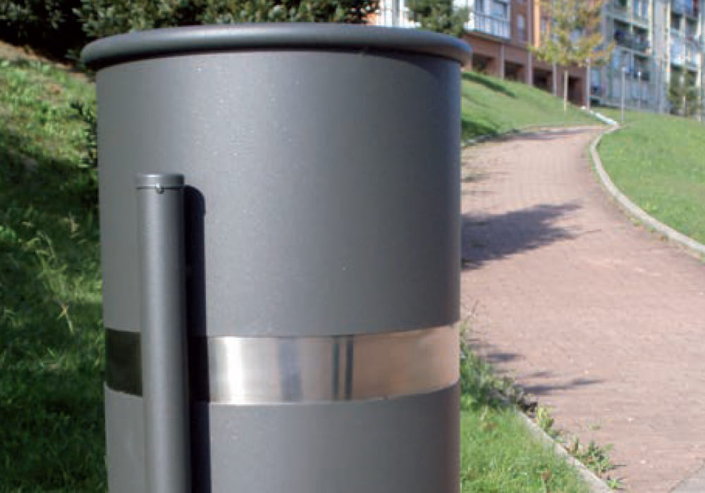 Esta papelera urbana circular destaca por su estructura robusta en chapa y tubo de acero galvanizado, un material que proporciona una excelente resistencia frente a la corrosión, la humedad, la intemperie y el uso intensivo. Su acabado con pintura en polvo al horno color RAL 7011 refuerza la protección exterior y aporta una imagen moderna y elegante, mientras que su anillo de acero inoxidable añade un detalle estético distintivo y una mayor durabilidad.