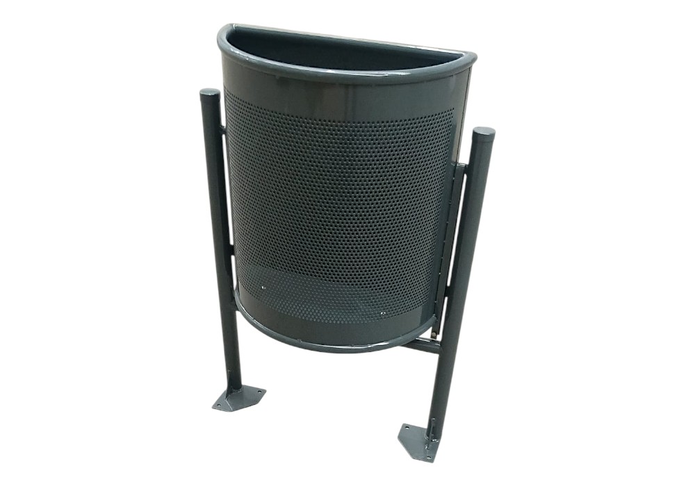La papelera DUMUPA-10 es una opción perfecta para mantener limpios y ordenados los espacios exteriores con poco espacio disponible. Su diseño semicircular abatible permite instalarla en calles estrechas, paredes y zonas de paso, ofreciendo una solución práctica y funcional para el mobiliario urbano.